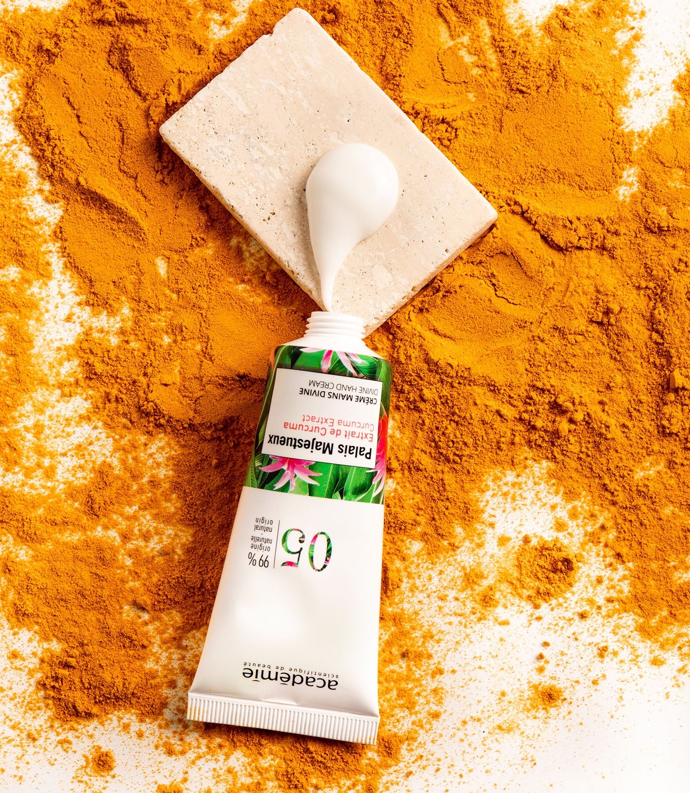 Inspirert av India, er vår rike krem med gurkemeieekstrakt, sheasmør og vitamin E spesialdesignet for å lindre og myke tørre hender uten å føles fet.