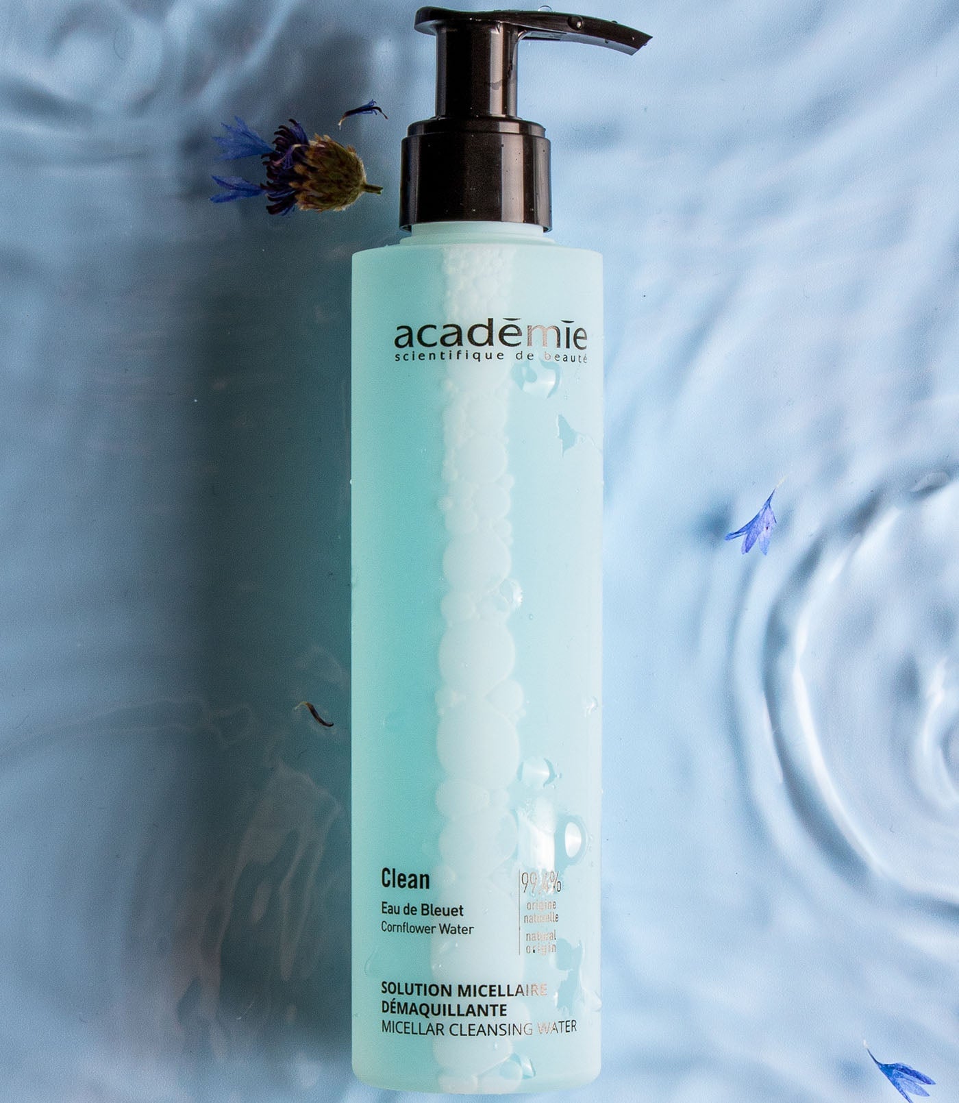 Dette micellære vannet med organisk kornblomstekstrakt renser og fjerner sminke fra ansikt og øyne i en enkelt gest. Miceller, milde rensemidler, fjerner effektivt sminke og alle urenheter uten å angripe hudens beskyttende film.